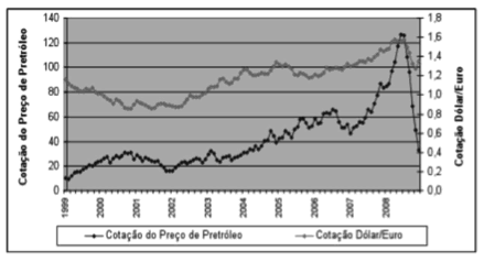 petróleo e de queda rápida da cotação do dólar, entre 2001 e 2008. Naquele