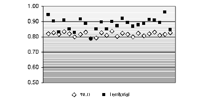 En síntesis, el análisis de sensibilidad territorial aplicado a las variables que componen el idh-pnud arroja las siguientes conclusiones. La esperanza de vida al nacer resulta una medida poco sensible a las disparidades territoriales cuando los países han alcanzado un nivel de desarrollo relativamente alto. Esto sugiere la necesidad de reemplazarla por otro indicador más efectivo cuando se mide la forma en que se distribuyen las capacidades en salud entre las unidades subnacionales. En relación con el componente educación, la tasa de alfabetización de adultos presenta las mismas características que la esperanza de vida al nacer, se torna espacialmente homogénea en países que presentan un mayor grado de avance, dejando sin sentido su incorporación a un índice territorial. Los datos referidos a la matrícula escolar no dan información significativa para medir las heterogeneidades territoriales en términos de logros educativos, esta conclusión lleva a sugerir el reemplazo del indicador o bien la incorporación de otra variable que lo complemente y permita precisar la información por él aportada.