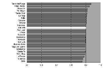 Dotar al idh-pnud de mayor validez y, al mismo tiempo, de sensibilidad para reflejar la desigual distribución de las capacidades entre unidades subnacionales requiere, en primera instancia, centrar el análisis en sus variables componentes. Es necesario comenzar indagando si cada uno de los indicadores que integran el índice sintético constituye una medida capaz de mostrar la forma en que se distribuyen los logros en un país determinado.