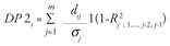 El indicador dp2 de Pena Trapero (1977), nos dará las distancias de cada país respecto a un país ficticio de referencia, en el cual se obtendría el valor mínimo en el conjunto de los indicadores sociales considerados. Así, m es el número de países; n el número de variables; Xij el valor de la variable i en el país j; si es la desviación típica de la variable i; y R2i, i−1,...,1 es el coeficiente de determinación, que mide la parte de la varianza de cada variable explicada por la regresión lineal realizada sobre las variables precedentes. Este coeficiente es un número abstracto independiente de las unidades de medida en que estén expresadas las distintas variables.