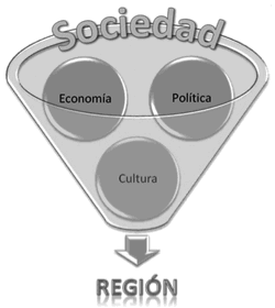 [26] La importancia de la región en la modernidad no fue asegurada sino hasta que se introdujo como un instrumento de organización de la realidad del mundo, es decir, a la economía con el fin de buscar nuevamente la integración que el proceso capitalista no logró; en otras palabras, cuando se transformó en la unidad territorial de instauración del proceso de desarrollo económico durante la posguerra (Ramírez, 2003: 34).