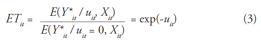 ETit = exp(–Uit) = exp[–(δ 0 + δ 1T + δ 2T2 + ∑ ƛiDi)–Wit ] (6)