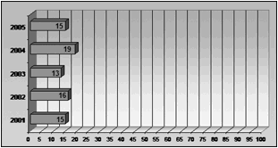 [8] Universo de notas para la ciudad Azul en la prensa nacional entre los años 2001-2005: 78 (100%).