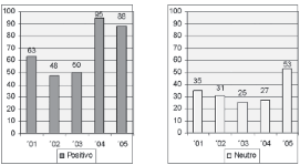 Olavarría en la prensa nacional entre los años 2001-2005: 84 (100%).