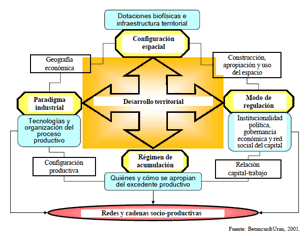 en términos de la configuración territorial y el modelo de desarrollo producido