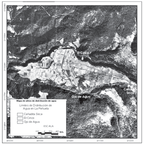 [3] El uso del azadón como principal herramienta para el manejo de la tierra en La Peñuela prevaleció hasta fines de la década de los cuarenta, utilizándose para la remoción de tierra, la siembra, la cosecha, la formación de surcos, etc. Se estima que con la utilización del azadón, un peón podía abarcar unos 200 a 300 metros diarios de tierra. En cambio, con el arado el tiempo invertido en el cultivo, así como el número de brazos requeridos para cultivar la misma superficie se reducía una tercera parte (Menegus-Bornemann, 1998).