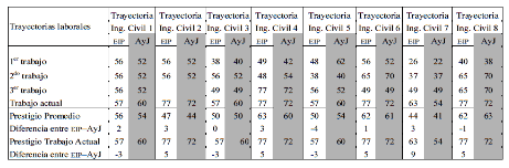 trayectorias laborales y las escalas subjetivas de prestigio, se demostró que