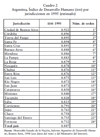 desarrollo humano. En el cuadro 2 la ciudad de Buenos Aires detenta, de nuevo,