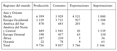 el exportador neto, y el principal destino de su producto va a América y Europa