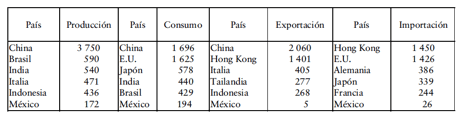 importante con 38.4% de la producción mundial. México se encuentra en un lugar
