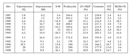 productor mundial, pasando de 50% en 1983 a 67% en 1994 de la producción
