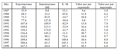 más adelante, México en 1994 no tenía un cúmulo importante de exportaciones de