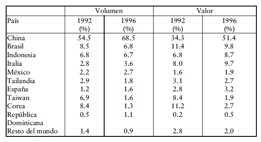 exportación de 55% de su producción total. Hong Kong (al igual que los Países