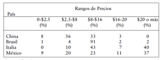 mercado presenta distintos segmentos conforme a precio y calidad, en los que