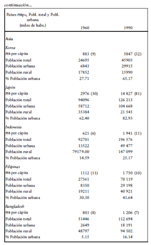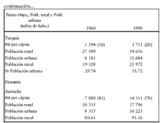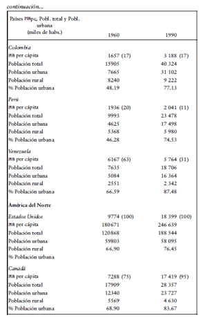 y porcentaje de población urbana, 1960 y 1990