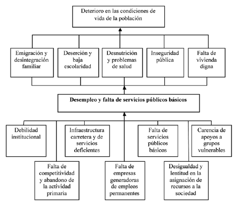 El Árbol de problemas es el diagnóstico de la situación, se realiza a partir de la identificación del problema central y la visualización y análisis de las causas y efectos que originan dichos problemas. En general, un problema se expresa en términos de la falta de determinados medios que podrían servir para resolverlo: falta de crédito, inadecuado uso del agua, ausencia de regulaciones legales, falta asistencia técnica, escasa coordinación interinstitucional, etc. Los planificadores tienen que aplicar métodos que partan de la visión de los afectados y comparen entre sí las distintas perspectivas.