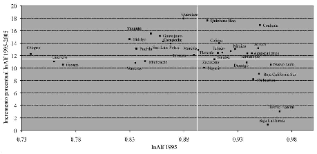 shows substantial progress in development, explicable by tourism. Yucatan is