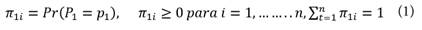 De acuerdo con lo anterior, en cada periodo t existen n estados mutuamente excluyentes, en los cuales cada región tiene que ocupar uno de esos estados. El modelo para la productividad del trabajo está dado por un vector de probabilidad inicial (π1), mismo que describe la probabilidad de los posibles valores del estado inicial P1: