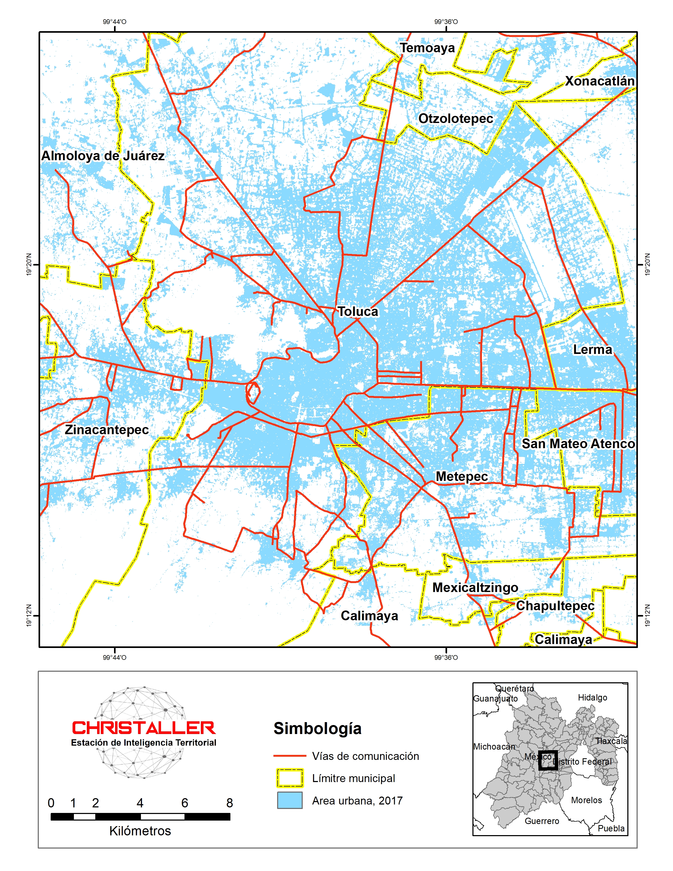 Jiménez, Eduardo; Carlos Garrocho y Tania Chávez (2018), “Modelando la expansión urbana con Autómatas Celulares: aplicación de la Estación de Inteligencia Territorial (CHRISTALLER®)”, Geogra- fía y Sistemas de Información Geográ ca (GeoSig), 12 (10), Instituto de Investigaciones Geográ cas-Universidad Nacional de Luján, Luján, Argentina, pp. 1-26.